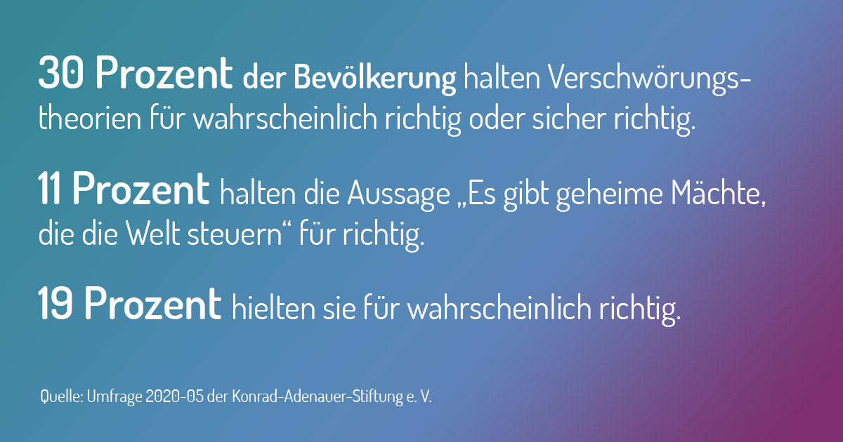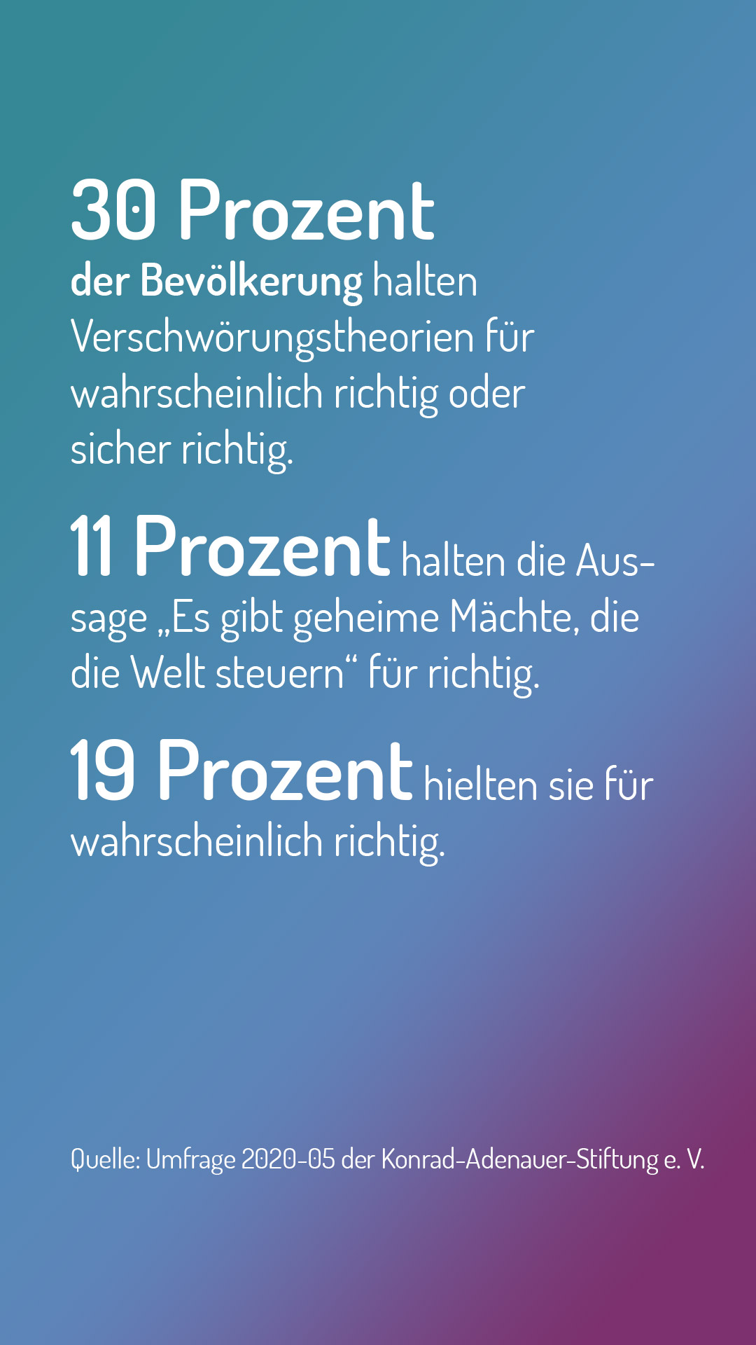 Das Medienpaket „Fakten zu Verschwörungstheorien“ ist eine thematische Zusammenstellung aus Bild- und/ oder Textpostings für die Social Media Kanäle Facebook, Instagram und X. Wir stellen Ihnen die Beiträge zur freien Verfügung bereit. Nutzen Sie diese selbst oder leiten Sie die Postings an Ihre zuständige Social Media Stelle weiter. Wie und ob Sie die Beiträge veröffentlichen, können Sie individuell entscheiden. Texte und Hashtags können Sie frei nutzen und für Ihre Anforderungen anpassen.